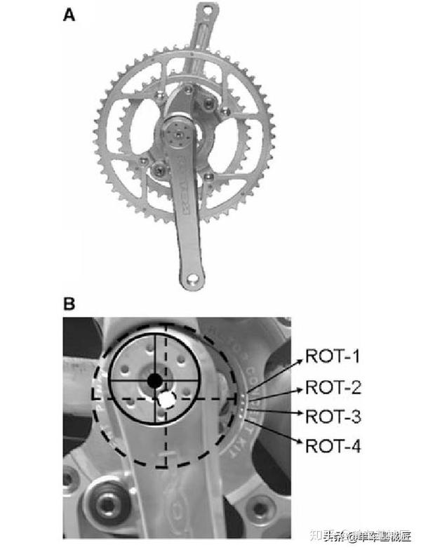 在Rotor RS4X曲柄上,两侧的牙盘腿是独立的,通过偏心轴和两根杠杆来进行同步,两根杠杆在每次循环过程中就会发生两次角度偏转,可以在顶部的在死点位置上产生角度变化,两侧的曲柄永远不会垂直方向上重合,从而避免了死点位置上的功率间隙问题。